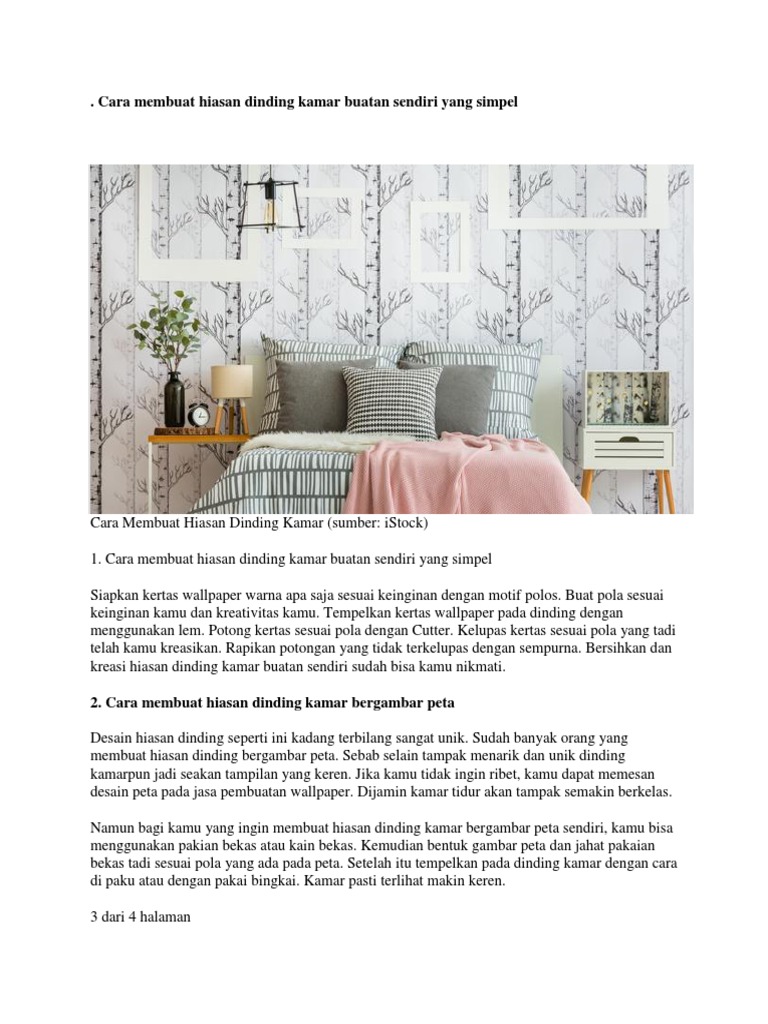 Langkah selanjutnya untuk membuat hiasan dinding kamar adalah dengan mencetak gambar yang kamu inginkan di kertas hvs berukuran a4. Kendati demikian, masih banyak orang yang tak tahu tentang cara mempercantik kamar dengan hiasan dinding. Cara desain kamar tidur sederhana terbaru. Pertama, siapkan kertas wallpaper warna apa saja sesuai keinginan dengan motif polos. Kejenuhan dan kebosanan karena seharian di rumah dapat kamu manfaatkan dengan menghasilkan hiasan yang dibuat sendiri.